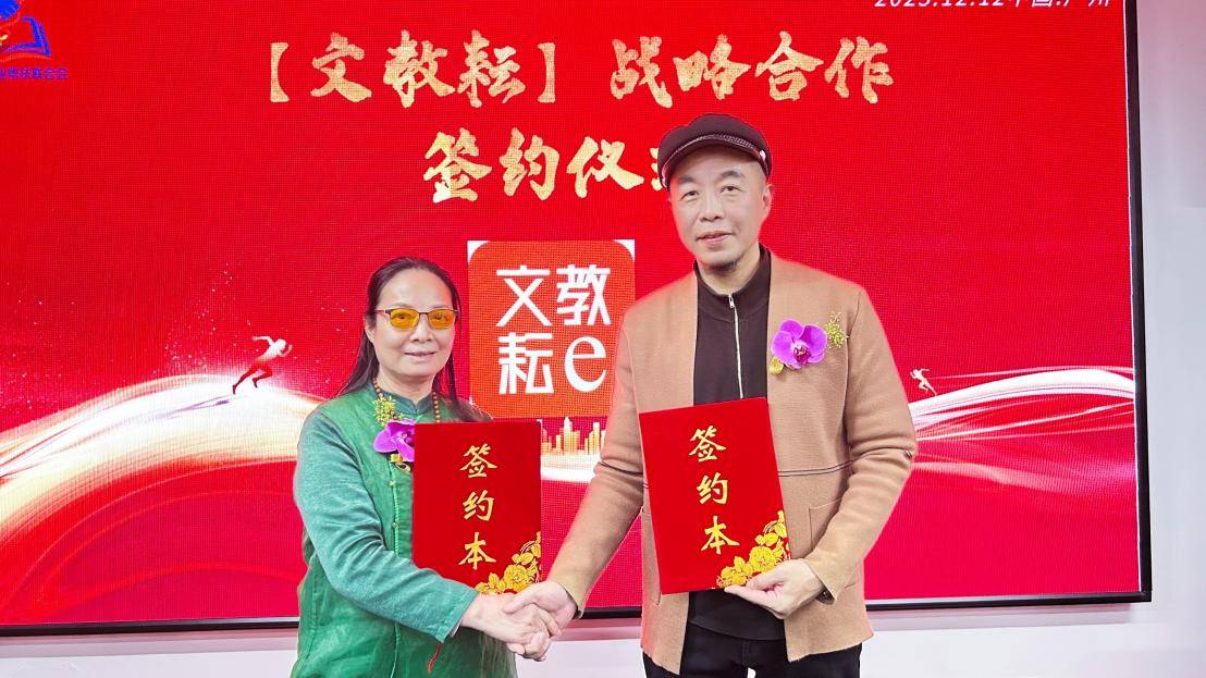 易墨老庄茶台发起人庄融易与广东省世家云吉(文教耘)管理中心董事长温翼帆签约